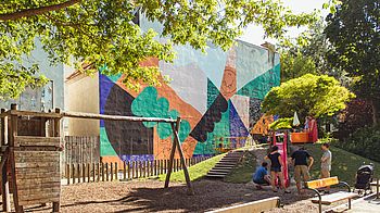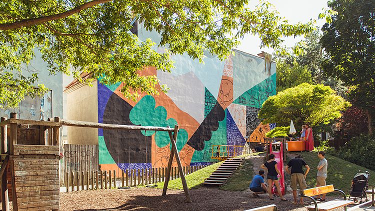 Am Freitag, den 28. Juni war Action im Braunhirschenpark angesagt! Wir haben im Rahmen des Sommerfestes "Summertime in Rudolfscrime" unsere Grätzelheld*innen-Initative einem interessierten Publikum präsentiert, die kleinen BesucherInnen mit einem Seifenblasen-Spektakel begeistert und gemeinsam mit Improper Walls eine graue Hausmauer kunstvoll gestaltet.