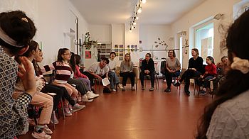 In Ottakring stand das Thema „gute Nachbarschaft“ im Mittelpunkt: 18 Mädchen im letzten Kindergartenjahr beschäftigten sich spielerisch mit Stadtleben und Nachbarschaft, diskutierten über ihre Wünsche und Bedürfnisse und gestalteten in Gruppen ihre eigene kleine Stadt – mit Krankenhaus, Partyhaus, Schwimmbad, Hotel, Wohnanlage.