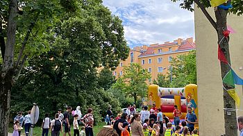 Im Mittelpunkt des Festes standen jedoch die Kinder selbst, die einen großen Anteil an der erfolgreichen Organisation und Durchführung des Festes hatten. Am Festtag engagierten sich die Schüler*innen des Bildungsgrätzls mit Auftritten auf der Bühne, nahmen aktiv am Programm teil und waren für die Müllentsorgung verantwortlich.