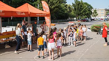 Der Platz vor der offenen Volksschule Märzstraße wurde umgestaltet. Das Ziel: Das Schulvorfeld sollte künftig auch als „Freiluft-Klassenzimmer“ genutzt werden können. Wie das aussehen kann und was der öffentliche Raum sonst noch gut brauchen kann, haben wir mit den Schüler*innen in Kreativ-Workshops erarbeitet.
