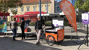 Wir informierten zu Stadtteil-Initiativen, Aktionen wie "Natürlich kühl" und Garteln ums Eck, zum Stadtentwicklungsgebiet Neu Leopldau und Möglichkeiten, selbst aktiv zu werden und mitzugestalten.