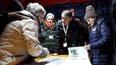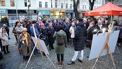 Rund 100 Bewohner*innen der Serviten- und Grünentorgasse, Geschäftstreibende aus der Umgebung und Interessierte trotzten der Kälte und kamen zur Informationsveranstaltung am 23. Jänner, um sich über die geplanten Veränderungen in ihrem Wohnumfeld zu informieren.