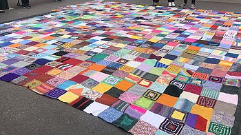 In den vergangenen 18 Monaten haben viele fleißige Hände gestrickt, gehäkelt, Fleckerl vorbeigebracht, per Post geschickt und zusammengenäht. Und miteinander und unter Anleitung unseres GB*-Teams in Floridsdorf eine ganz besondere Decke geschaffen.