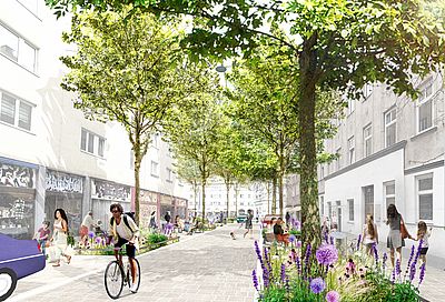 18 neue Bäume werden gepflanzt, neue Straßenmöbel installiert.