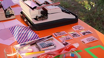 In der Kreativ-Werkstatt „Baustelle Zukunft“ hielten die Besucher*innen ihre Eindrücke von der Umgebung auf Polaroid-Filmen fest und verfassten kurze Texte auf der Schreibmaschine. Die Werkstatt wird auch in Zukunft regelmäßig angeboten: so kann die Nachbarschaft spielerisch und kreativ die Entwicklungen im neuen Stadtteil begleiten!