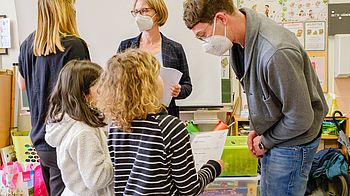 Auch in der abschließenden Planungsphase waren wieder die Kinder am Zug. Die Schülerinnen und Schüler entschieden mit, welche Möbeldesigns das Rennen machten, sie wählten aus drei Baumarten, wählten das Muster der Pflasterung und redeten bei der Ausgestaltung des Wasserspiels am Platz mit.