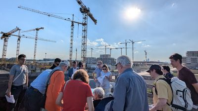 Unsere Baustellenführung startet am Vorplatz der U2-Station Hausfeldstraße und führt von dort zur Baustelle. Gemeinsam besuchen wir die Baustellenlogistik, die spannende Einblicke in aktuelle Entwicklungen gibt. Außerdem besichtigen wir eine Musterwohnung des Bauträgers KIBB.