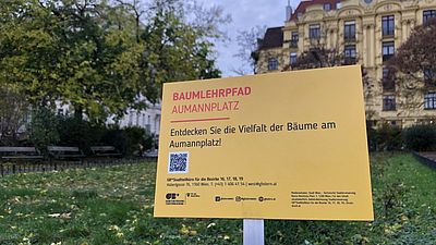 Mehlbeere, Trompetenbaum, Kirschpflaume: Im Norbert-Liebermann-Park finden sich zahlreiche Baumarten, die den Aumannplatz zu einer kleinen Grünoase machen.