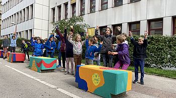 Die Schüler*innen der Ganztagsvolksschule Reichsapfelgasse waren sich in einer Sache rasch einig: Die Stadt soll bunter werden!