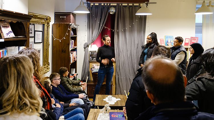 Das Buchcafé ist nicht nur Buchhandlung, sondern auch ein Ort in der Nachbarschaft, in dem sich die Menschen jederzeit treffen und austauschen können – ohne unbedingt etwas kaufen zu müssen! Auch die Schüler*innen sind von Romana herzlich eingeladen, jederzeit wieder zu kommen – zum Schmökern, Ausruhen oder Hausübung machen.