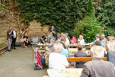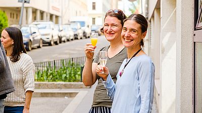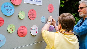 Bei frühsommerlichen Temperaturen wurden Glücksrezepte ausgetauscht und „Stärken“ gesammelt, das eigene Glückspflänzchen gestaltet und an Diskussionsrunden teilgenommen. Aber auch ernste Themen kamen zur Sprache. Das Gewaltpräventionsprojekt STOP – Stadtteile ohne Partnergewalt, das sich zum Ziel setzt, Nachbar*innen für das Thema (häusliche) Gewalt/Partnergewalt zu sensibilisieren und Zusammenhalt und Zivilcourage in der Gesellschaft zu stärken, informierte vor Ort und bot Jungpflanzen für den eigenen Balkon oder Garten an.
