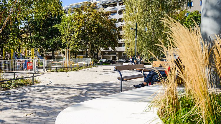 „Kinder werden den tollen neuen Spielplatz erforschen und Spaß dabei haben, für Erwachsene gibt es ausreichend Sitzmöglichkeiten zum Verweilen und Ausruhen, und auch fürs Auge gibt es wunderschöne Blumenbeete“, freut sich Bezirksvorsteherin Michaela Schüchner.