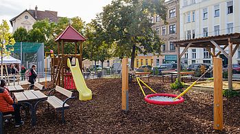 - Neue Spielgeräte für Kinder sowie Sitzmöglichkeiten für Eltern und alle, die sich entspannen wollen.