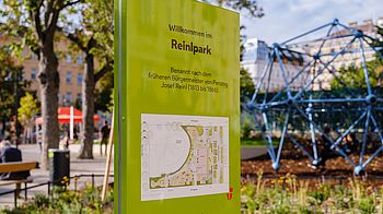 - Helle Platten am Boden geben dem Park ein frisches Aussehen und machen den Park klimafit.