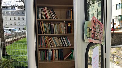 Wer überzählige oder augelesene Bücher hat, kann diese hier deponieren - und/oder sich mit neuem spannenden Buchmaterial eindecken.