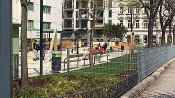 Der Park, der auf Initative der Bezirksvorstehung neu gestaltet wurde, bringt jetzt für alle Nutzer*innen noch mehr Aufenthaltsqualität.