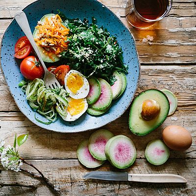 Beim Essen gilt: Möglichst auf schwere und fette Kost verzichten und auf mehrere leichte Mahlzeiten aus Obst, Gemüse oder Salat setzen.