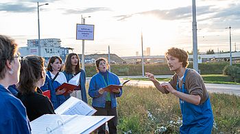Wir, das Team der Gebietsbetreuung Stadterneuerung für den 22. Bezirk, begleiten die Entwicklungen am Oberen Hausfeld schon seit 2024.