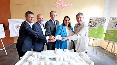 Das städtebauliche Leitbild sieht hier einen weitgehend autofreien Stadtteil vor. Mehr als 4.000 Wiener*innen werden hier auf dem Gelände der ehemaligen Aspanggründe in Wien-Landstraße ein neues Zuhause finden. Neben 742 geförderten Wohnungen, davon 278 SMART-Wohnungen und 146 Gemeindewohnungen NEU, wird auch der 20.000 Quadratmeter große Bert-Brecht-Park errichtet.