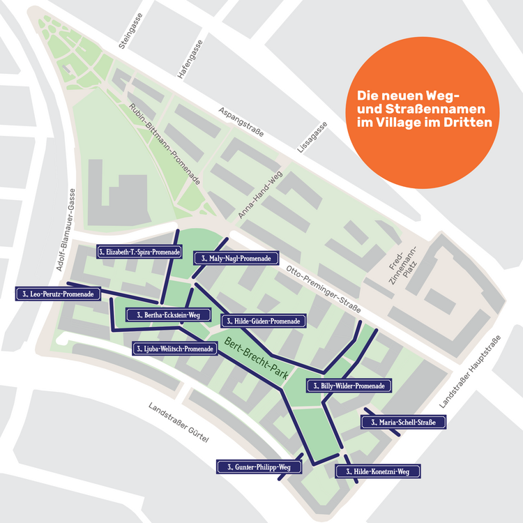 Zufahrten zu den Tiefgaragen im Village im Dritten sind in der Otto-Preminger-Straße, in der Quartiersstraße beim Landstraßer Gürtel sowie in der Landstraßer Hauptstraße geplant.