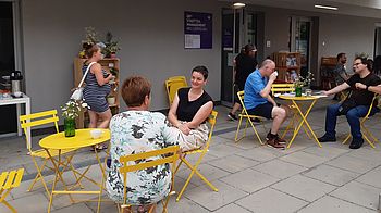 Mit dem Nachbarschaftscafé förderten wir das Kennenlernen von Nachbar*innen und Bewohner*innen und luden dazu ein, gemeinsam die neue Umgebung zu entdecken und Ideen für die Nachbarschaft umzusetzen. Bei unseren Nachbarschaftswochen holten wir lokale Akteur*innen vor den Vorhang und erkundeten mit Bewohner*innen den neuen Stadtteil.
