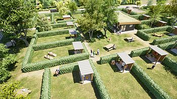 - Gartenparzellen von 70 bis 120 m² in einer grünen Umgebung, abgegrenzt durch natürliche Hecken