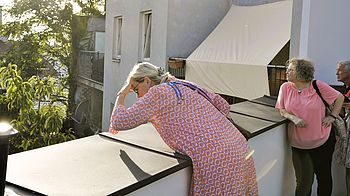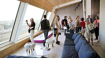 Hier besichtigten wir ein Best-Practice-Beispiel einer nachhaltigen Sanierung, bvor es dann weiter zu einem innovativen, ökologisch errichteten Dachausbau in der Felberstraße ging.
