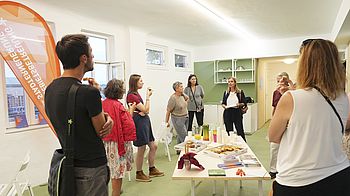 Unsere Tour endet beim gemütlichen Ausklang im Stadtraum Mitte 15. Bei Snacks und Getränken gabs Gelegenheit, Fragen an die Expert*innen zu stellen und ausreichend Zeit zum Plaudern und Vernetzen.