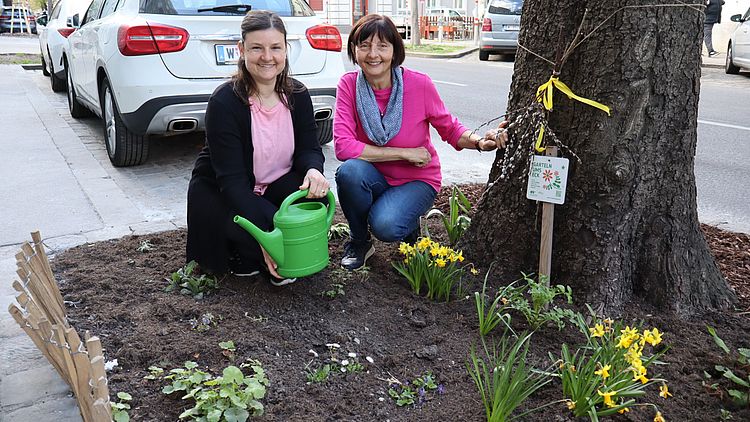 Sie möchten Renate und Claudia beim Gießen in der warmen Jahreszeit unterstützen oder selbst eine Baumscheibe begrünen?